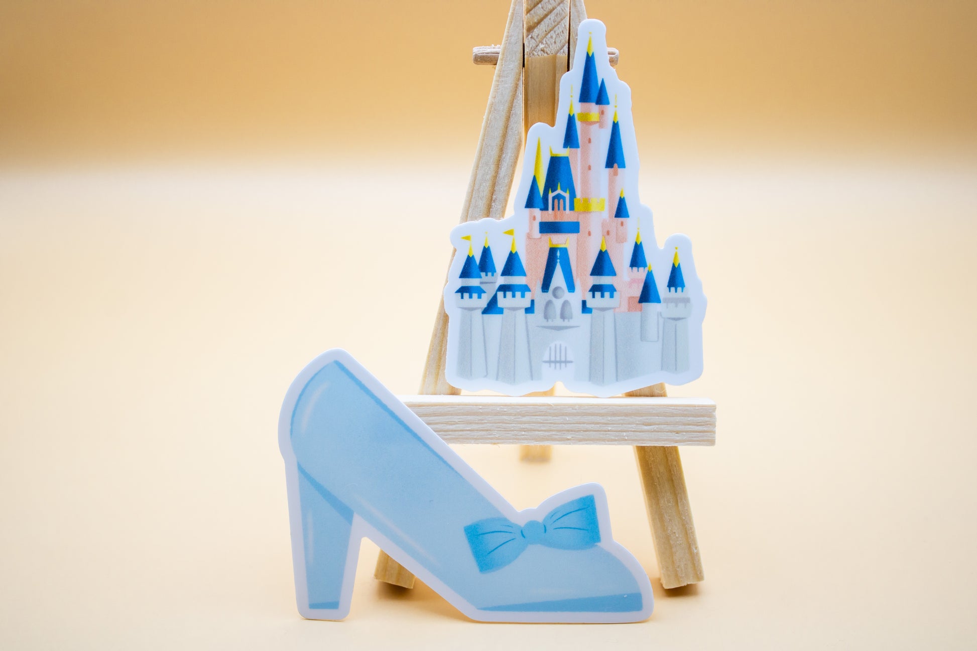Cinderella stickers are a timeless way to celebrate one of Disney’s most beloved princesses. This design captures Cinderella’s iconic glass slipper in shimmering detail — translucent and elegant in its design. The die-cut, matte-finished decal preserves every graceful curve and delicate accent, all while staying durable and fade-resistant.