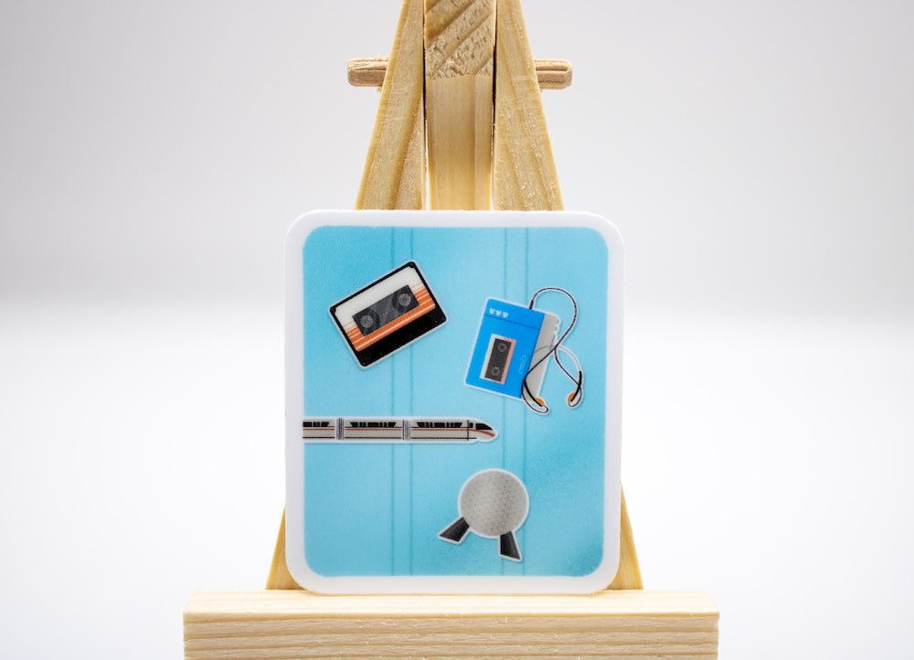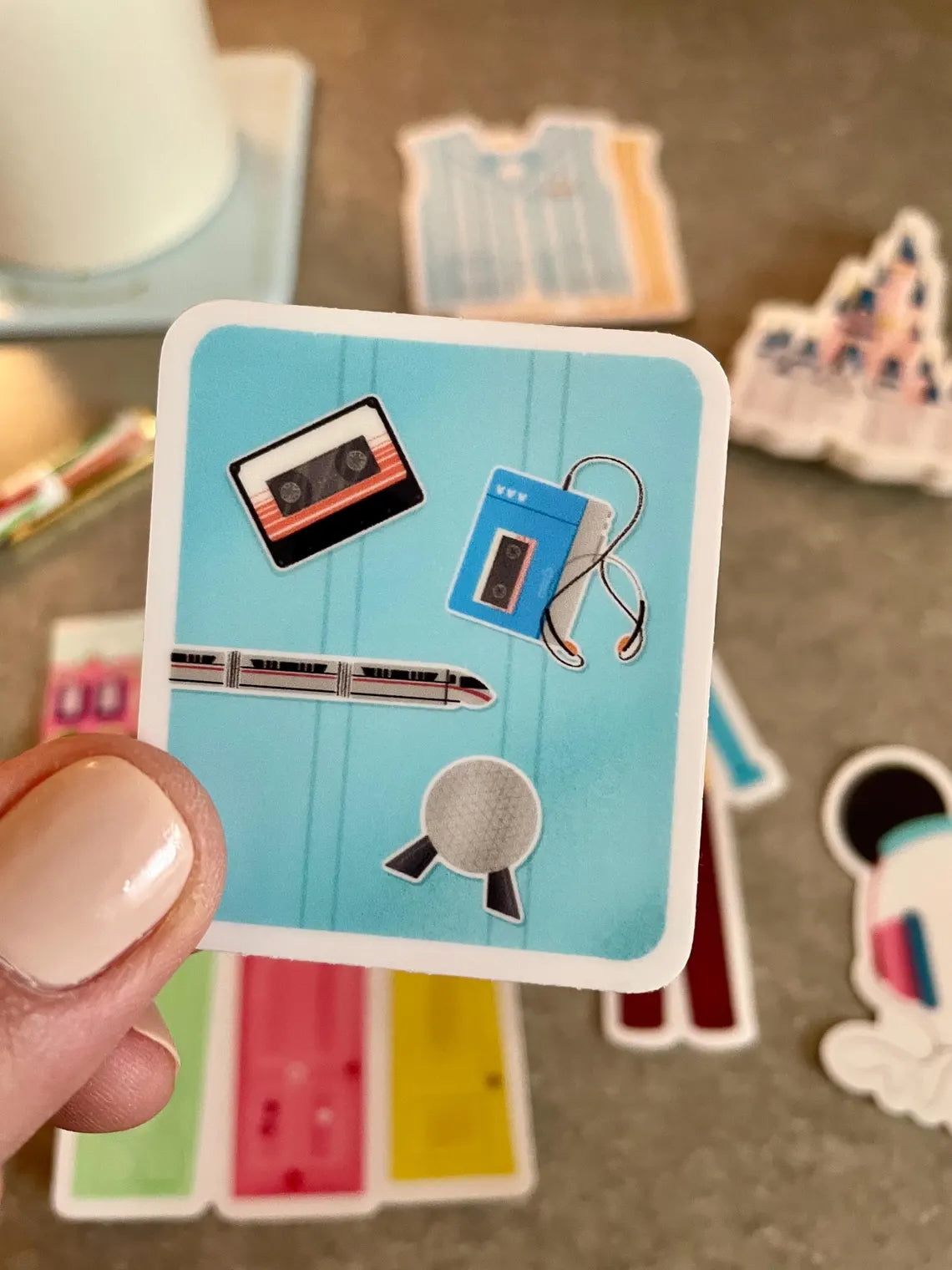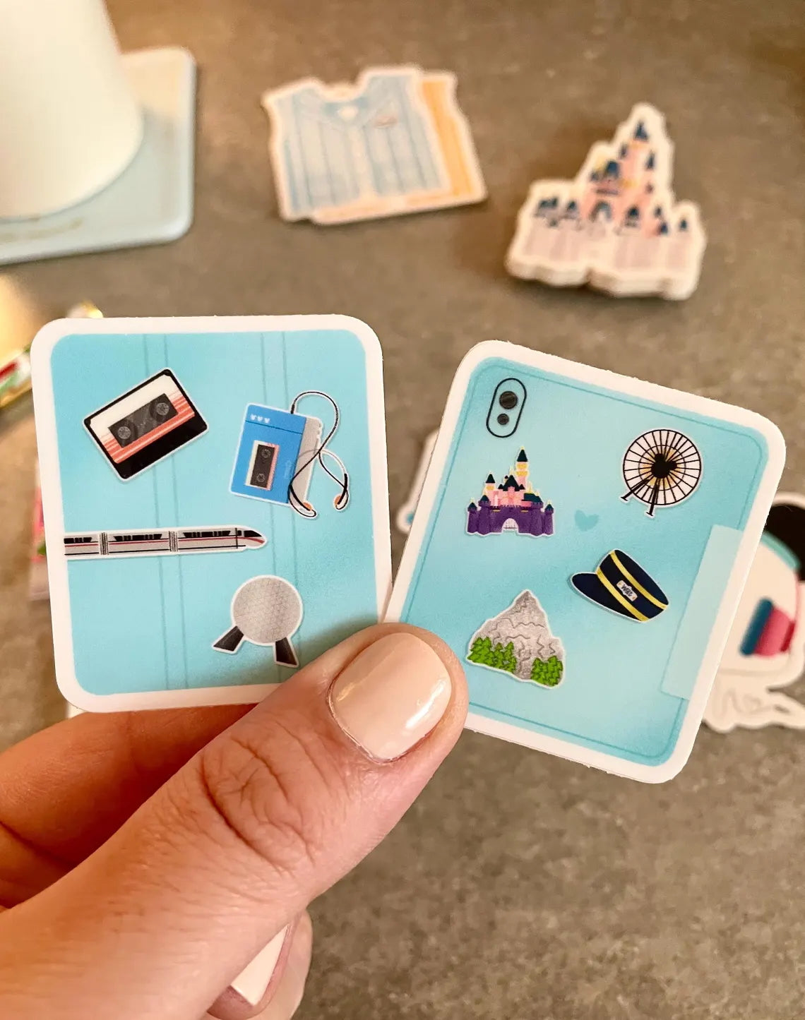 Give your device a playful nod to nostalgia with this vibrant vinyl sticker featuring a blue iPad cover that’s been covered in Disney Parks stickers. Bold graphic elements make it perfect for laptops, tablets, water bottles, or anywhere you want a dash of Disney World flair.