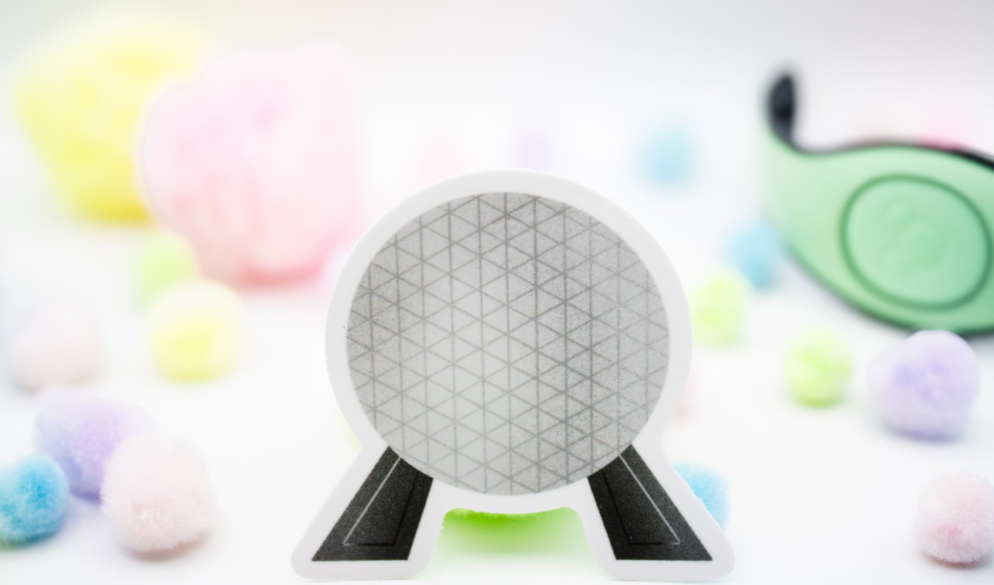 Dive into Epcot style with this bundle featuring five die-cut stickers, including the iconic geodesic sphere, a Disney firework, a Mickey-shaped margarita, and two sleek park transportation icons.