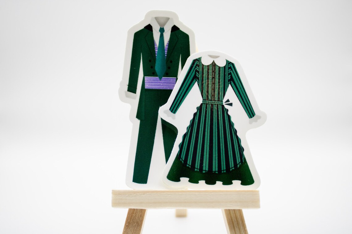 This sticker highlights the eerie elegance of a Haunted Mansion cast member, complete with the attraction’s signature green and black costume details. As part of our Disney World cast member stickers collection, it celebrates the look and spirit of the people who bring the parks’ spooky stories to life. Durable and matte-finished, it’s perfect for adding a subtle, eerie touch to your water bottle, laptop, or travel gear.