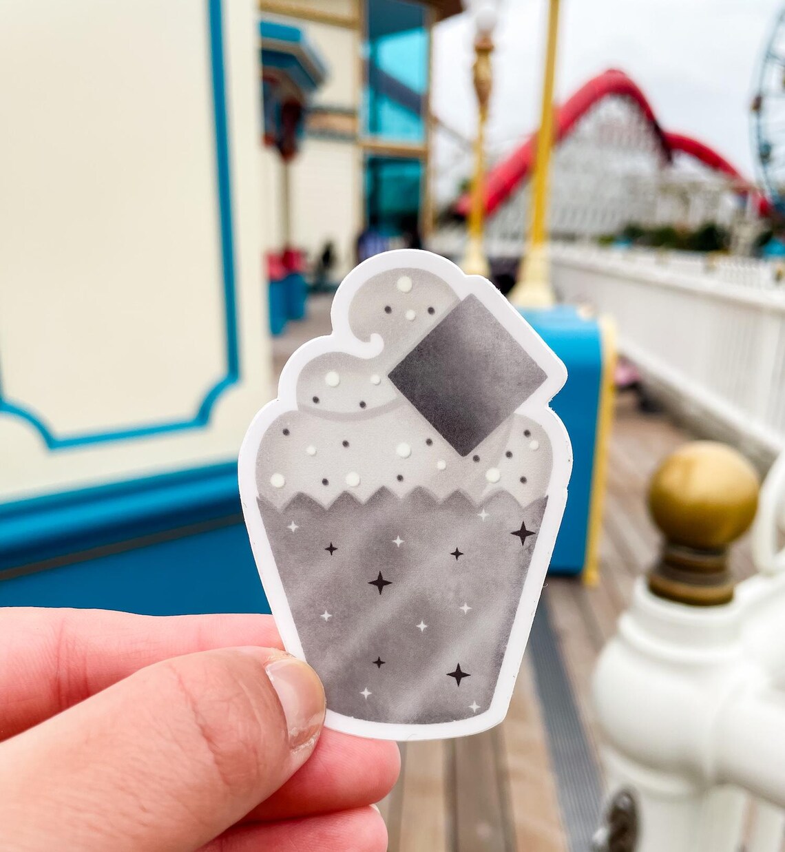 Our Grey Stuff cupcake sticker celebrates the iconic “grey stuff” from Beauty and the Beast with a stylized cupcake design modeled after the treat at Gaston’s Tavern in the Magic Kingdom — and it’s as sweet to look at as it is to indulge in! The die-cut, matte vinyl finish is waterproof and weatherproof, making it perfect for decorating water bottles, laptops, or travel gear. Stick it on and carry a little “Be Our Guest” magic wherever you go.