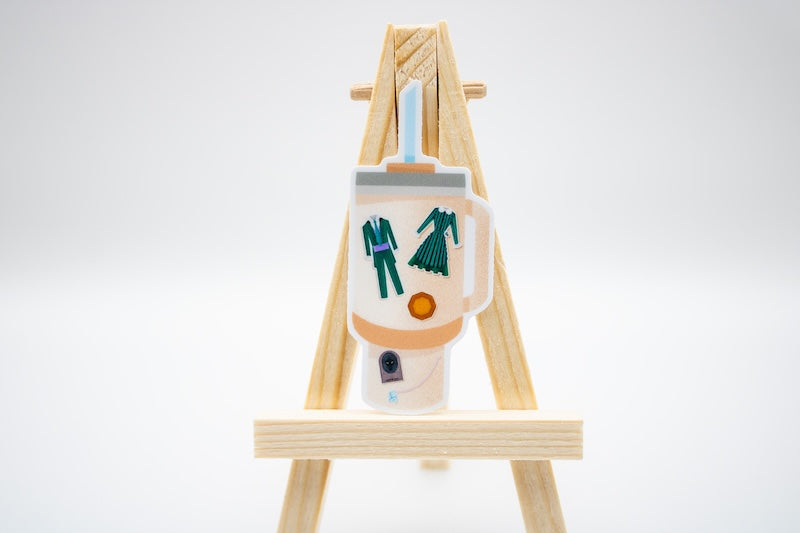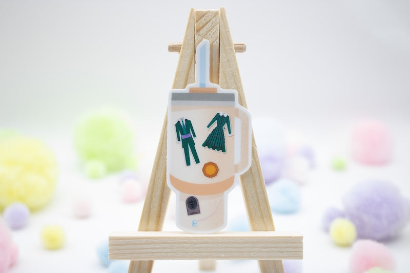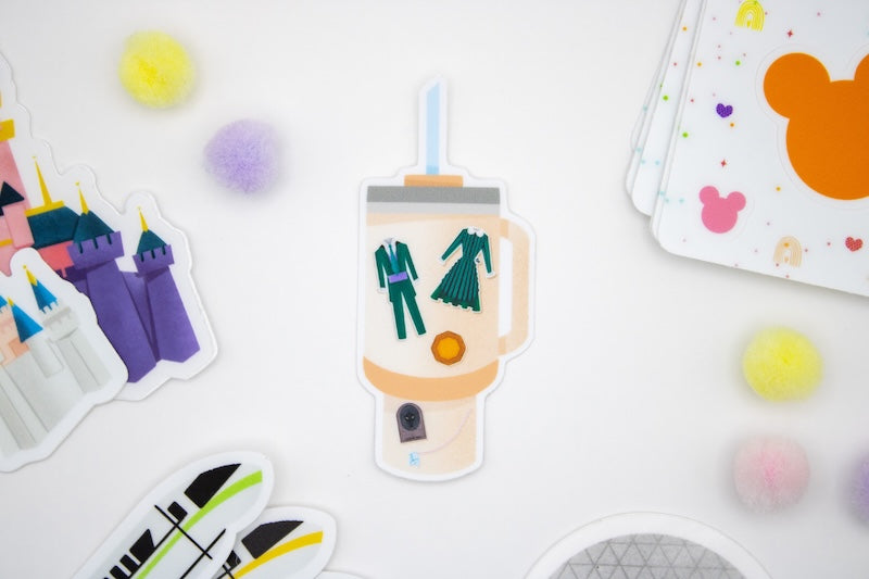 Add spooky charm to your gear with this vinyl sticker featuring a cream-colored Stanley-style tumbler covered in miniature Haunted Mansion designs. Crafted from waterproof, weather-proof vinyl with a matte finish, this sticker is built for laptops, water bottles, luggage, or any surface that could use a ghostly flourish. Part of the Haunted Mansion stickers collection, it’s perfect for fans who love subtle park-inspired décor with a spooky twist.