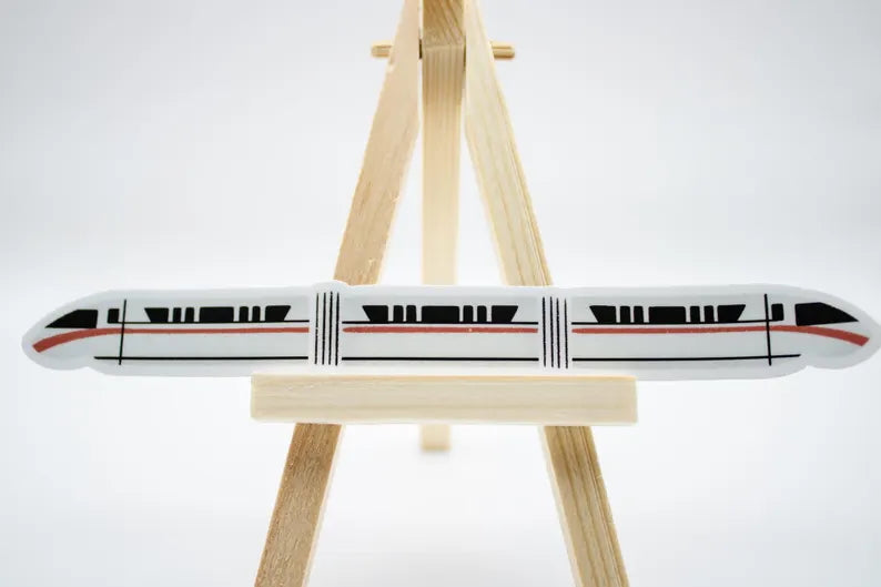 ✨ Red Monorail: 6.45″ × 0.75″, matte finish, white back