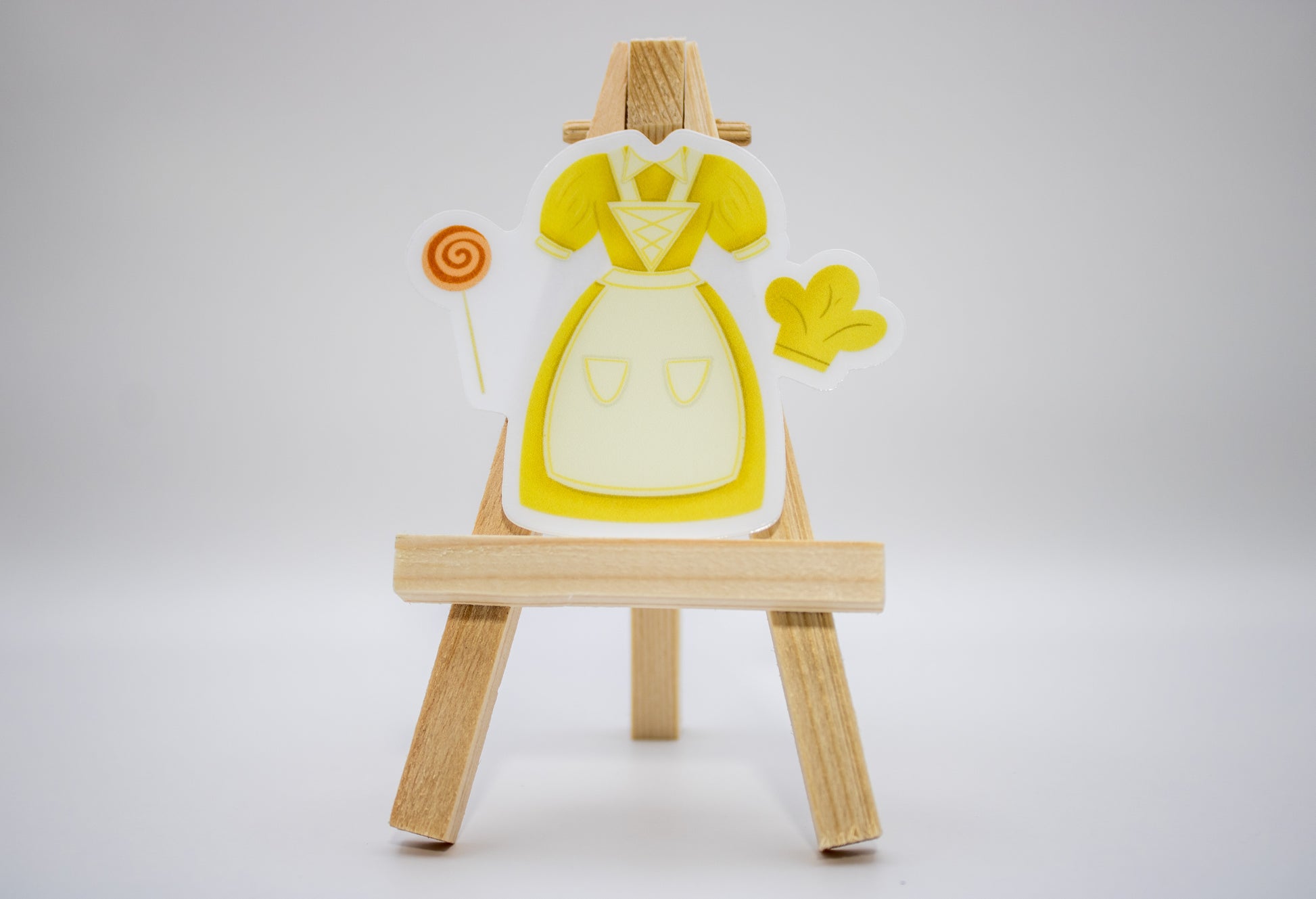Cast member costume stickers are a great way to showcase your love for all things Disney Parks. This selection honors the sweet spirit of the Main Street Confectionery, featuring a cast member outfit complete with a yellow apron and whimsical charm. With a die-cut, matte finish, it resists wear while adding that nostalgic park feel to your gear.